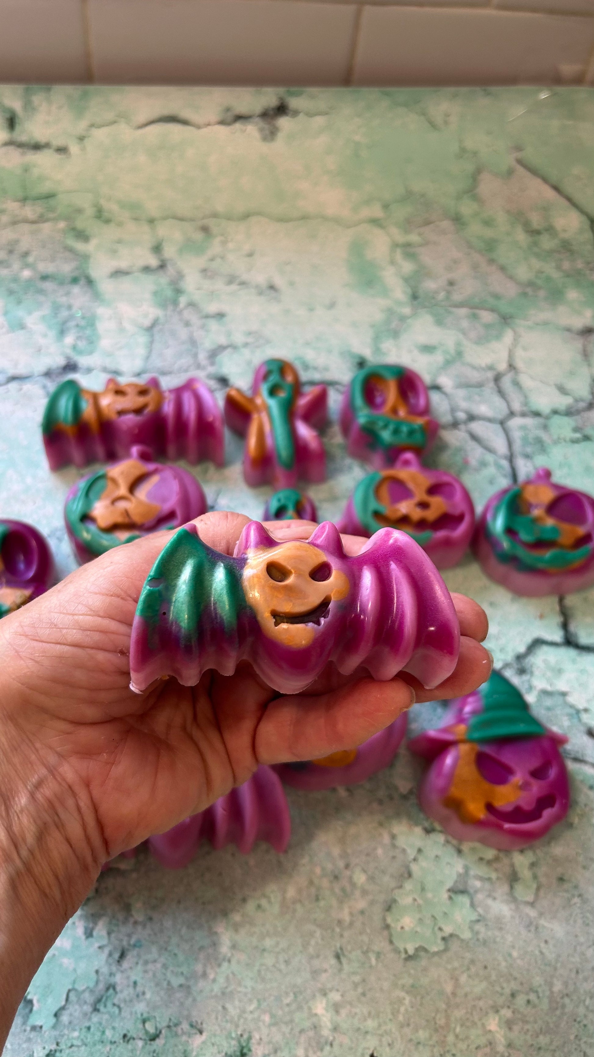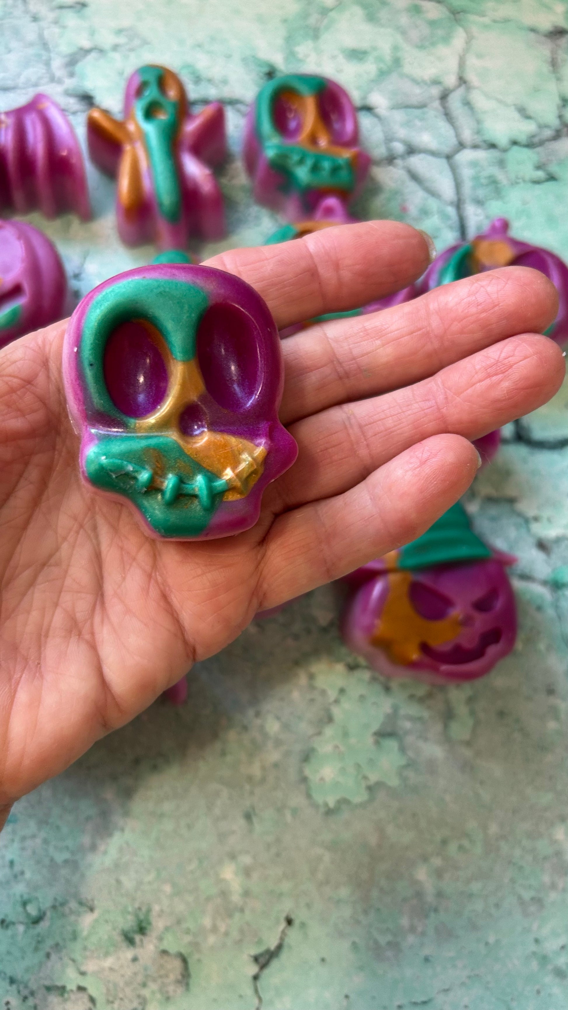 All wax melts are handmade and hand-poured in small batches by me from 100% 6006 IGI parasoy wax. They are eco-friendly and melt beautifully in any warmer! Only premium fragrance oils are used in these melts! I use maximum amounts of fragrance oils for a strong, long-lasting scent throw. Added glitter and mica powder give each melt a beautiful appearance as it melts in your warmer. I also take custom orders in any shapes available on my site in your choice of fragrances.